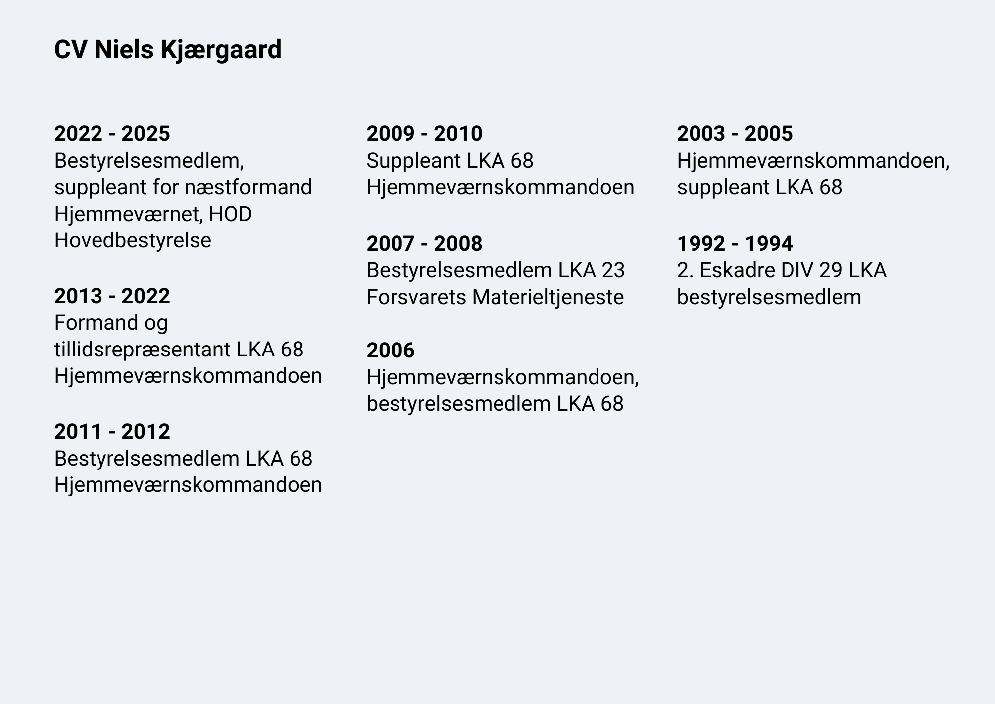 Orlogskaptajn Niels Kjærgaard, 59 år. HB-medlem Hjemmeværnet. Sagsbehandler i Myndighedssektionen i Forsvarsministeriets Materiel- og Indkøbsstyrelse.