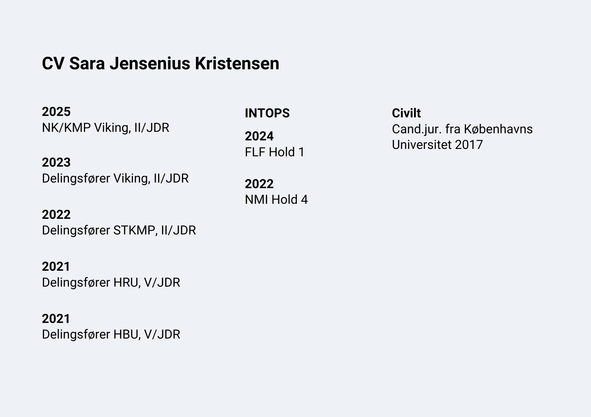 Premierløjtnant Sara Jensenius Kristensen, 32 år, HB-medlem Hæren. Næstkommanderende for Det Mekaniserede infanterikompagni i II/JDR.